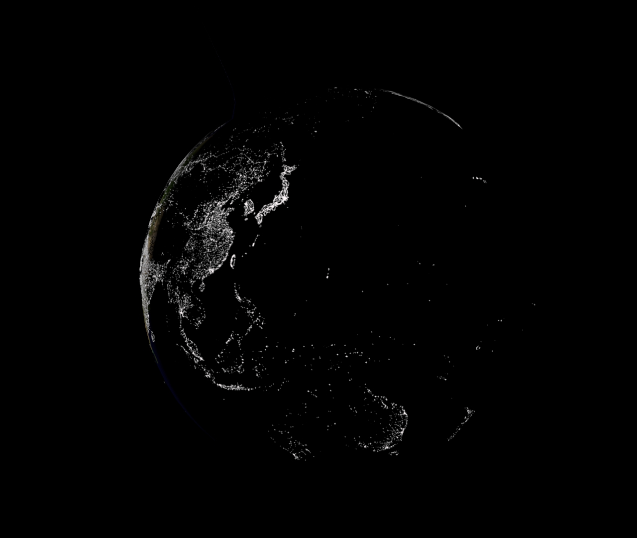 I unwrapped and mapped images from Nasa’s Blue Marble project to create the most realistic rendition of Earth I could for the home/menu screen of a game I am currently designing. The Hyperbolic extrusion in the third image is meant to be a futuristic space travel lift. The fourth image is meant to portray the ‘terminator’ line between day and night, with the sun illuminating the land of Africa, and the city lights lighting up South America. I have set up the two lights to effect individual layers in order to animate the terminator! Below is some footage from the ISS showing its journey to the darkside! In the last frame you can just see the streetlights starting to emerge from the darkness. WARNING! Vertigo sufferers may want to look away now.
