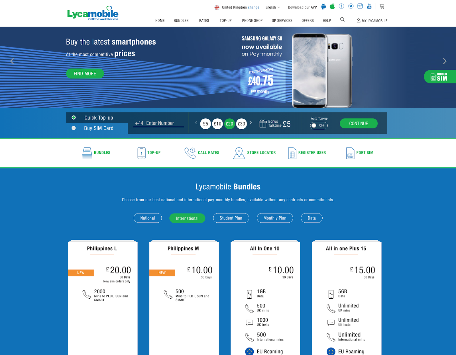 Recent concept and wire-frame for landing page to drive traffic to the Lycamobile site and improve customer retention.